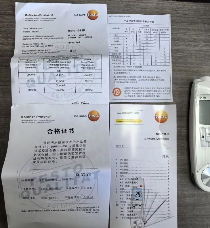 | ハイライト | Testo 104-IR dual purpose thermometer,IR and penetration thermometer with warranty,Testo thermometer for industrial temperature measurement |